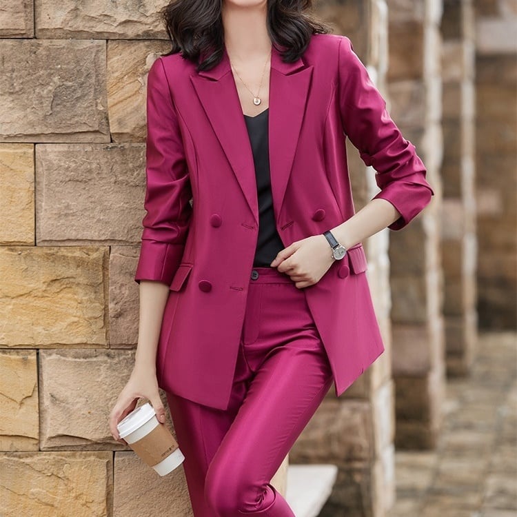 セットアップ ジャケット 上着 スーツ ロング丈 袖あり サテン調 ツヤ感 長袖 スラックス センタープレス スリム アンクルパンツ タイト 上下セット 2点セット ツーピース かわいい