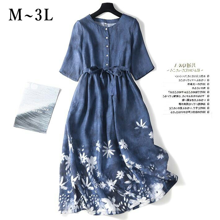 ワンピースロングワンピース花柄リネン綿麻大きいサイズ 半袖レディースロングマキシ丈 ゆったりフォマール夏23