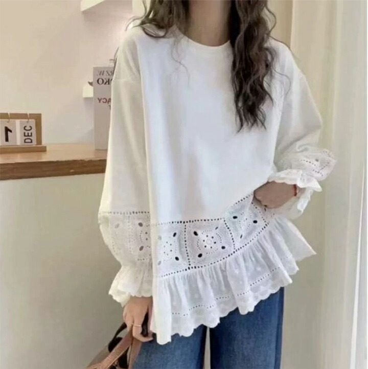 レース付きブラウス トップス レディース 春 秋 オーバーサイズ 送料無料
