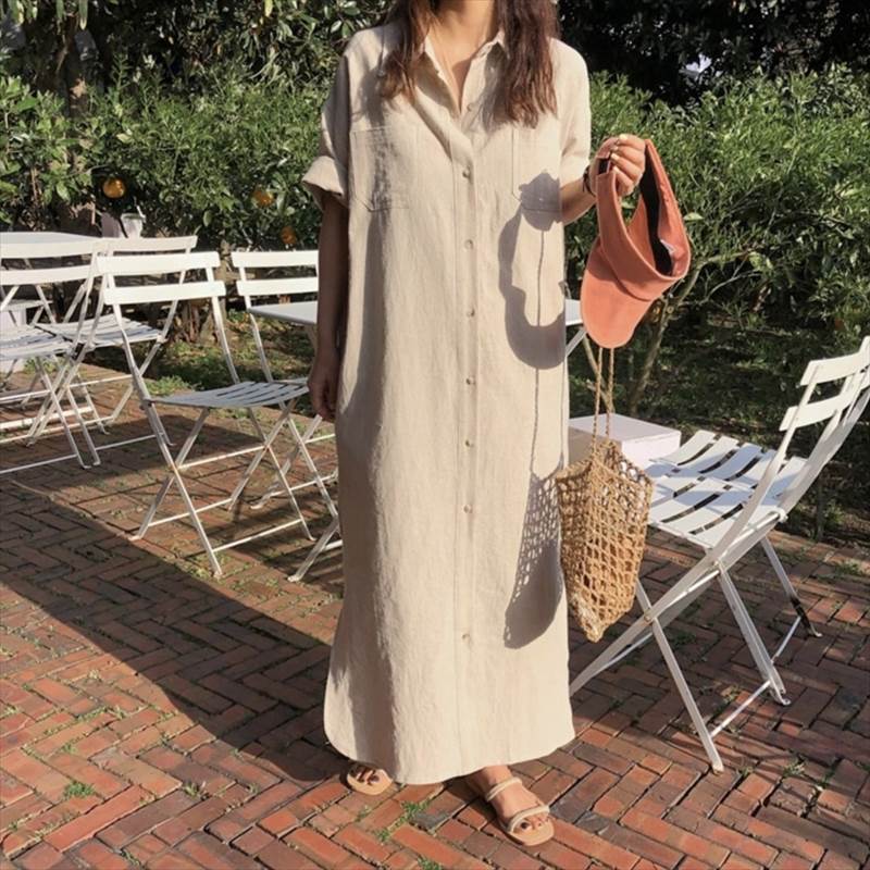 ワンピース シャツワンピース ロング丈 袖あり 半袖 襟付き ルーズ ストレート ポケット 前開き 薄手 大人可愛い きれいめ シンプル カジュアル 大人 かっこいい 大人女子 こなれ感 ラフ レトロ