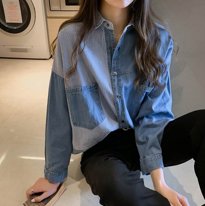デニムシャツ トップス シャツ レギュラー丈 Vネック 襟付き 角襟 ストレート 前開き 大人可愛い カジュアル 大人 おしゃれ かっこいい 大人女子 こなれ感 メンズライク ボーイッシュ ルー ラフ