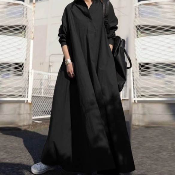 ワンピース マキシ丈ワンピース 袖付き 長袖 襟付き 角襟 かわいい 大人可愛い シンプル カジュアル 大人 上品 おしゃれ お洒落 かっこいい レトロ 大人女子 ラフ メンズライク クール こなれ感