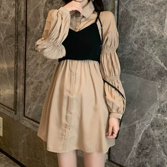 レディース ワンピース ミニワンピース フレアワンピース シャツワンピース ミニ丈 長袖 角襟 前開き 重ね着風 バックリボン かわいい 大人可愛い きれいめ シンプル おしゃれ かっこいい レ 上品