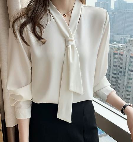 ブラウス 袖あり 大人可愛い お洒落 大人女子 とろみ感 抜け感 エレガント モダン ロングシーズン ホワイト 2 オフィス ビジネス クラシカル シック 入学式 インスタ映え