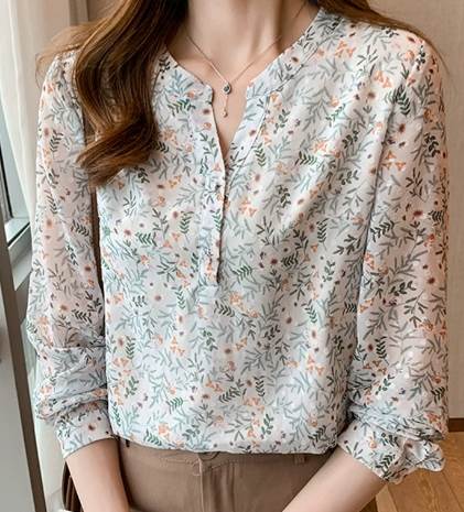 トップス シャツ 長袖 シフォン かわいい きれいめ 大人 上品 おしゃれ こなれ感 花柄 春 夏 秋 20代 30代 レディース ボタン プルオーバー ストレート 薄手 体型カバー シ ミディアム丈