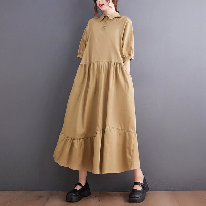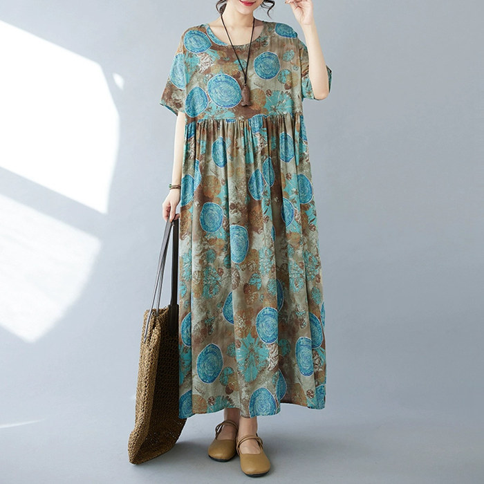 ロングワンピース 半袖 マキシワンピ 大きいサイズ ドット 春夏 シャツワンピース 薄手 綿混 レディース チュニック 体型カバー ビッグシルエット お呼ばれ オーバーサイズトップス 大人シンプ 花柄