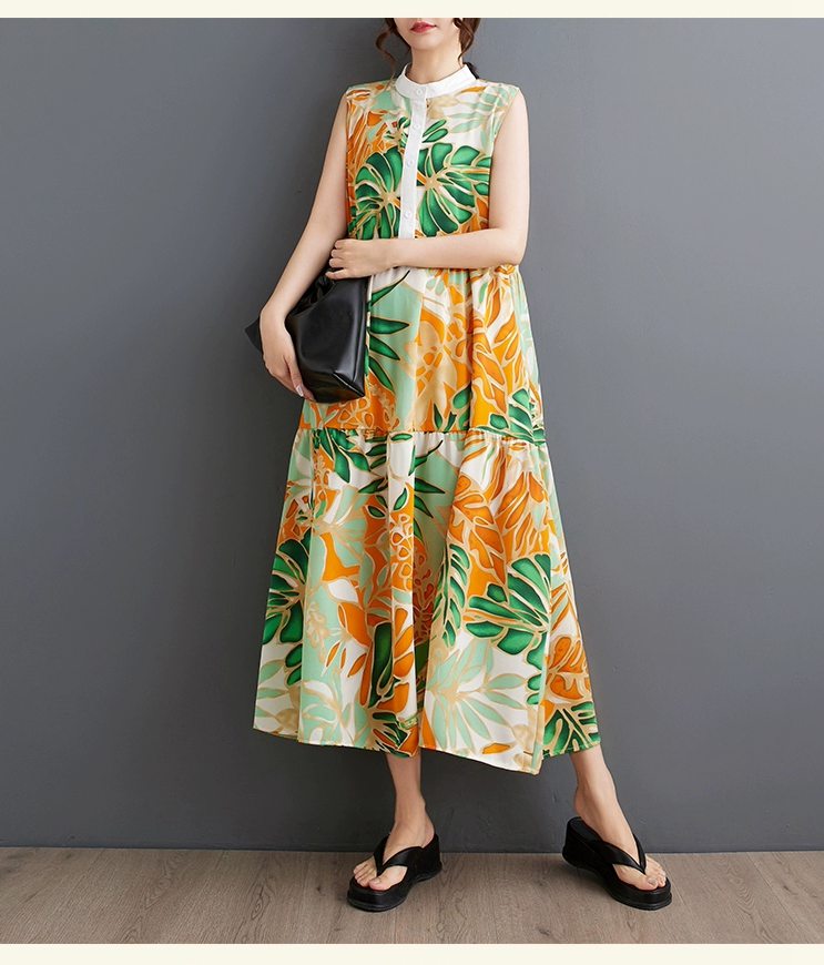 ワンピース マキシ 夏 袖なし プリント ロングワンピース シャツワンピース ノースリーブ ロングチュニック 大きいサイズ 切り替え レディース 体型カバー 着痩せ 大人可愛い 上品 大人可 きれいめ