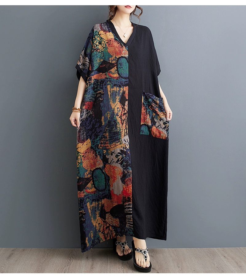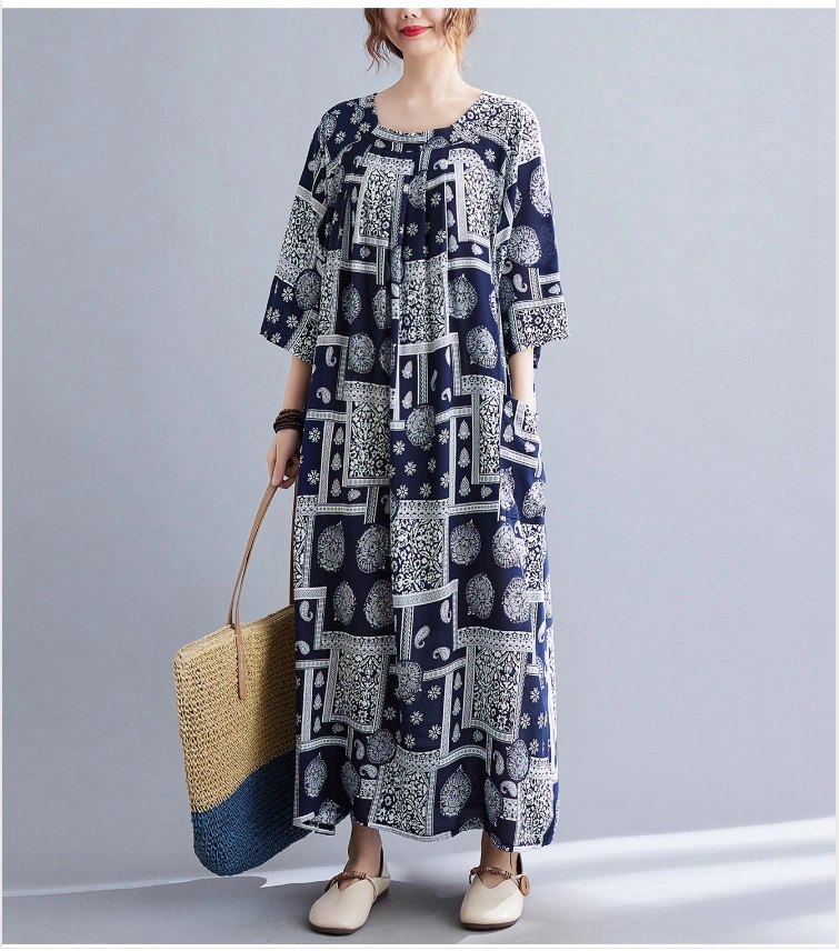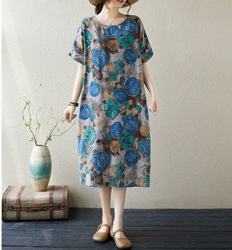 ロングワンピース 夏 チュニック ワンピース きれいめ プリント レディース