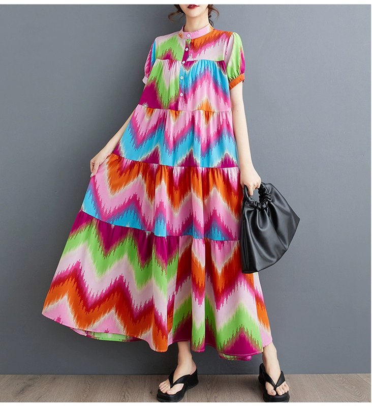 プリント チュニック 半袖 夏 レディース 大人可愛い ロングワンピース 上品 薄手 ワンピース ロングスカート きれいめ シャツワンピース カジュアルワンピース ロングシャツ マキシ 大きいサイ 春