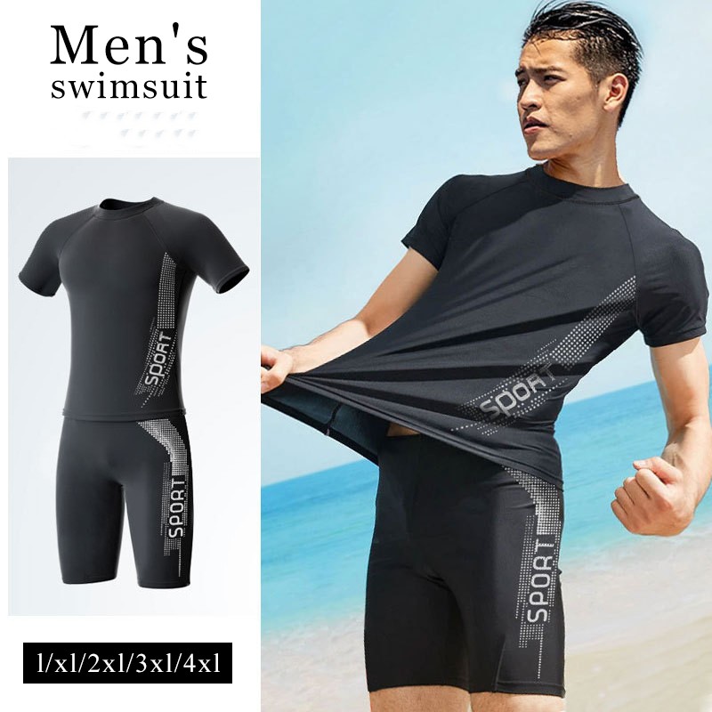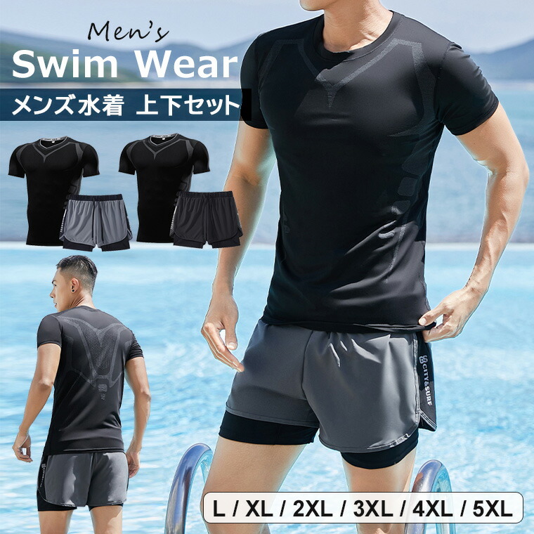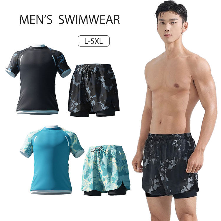 競泳水着 水着 メンズ スイムウェア L XL 2XL 3XL 4XL ラッシュガード 上下セット セパレート フィットネス水着 競泳 半袖 スイミングパンツ トレーニング 黒 かっこういい 大きいサ