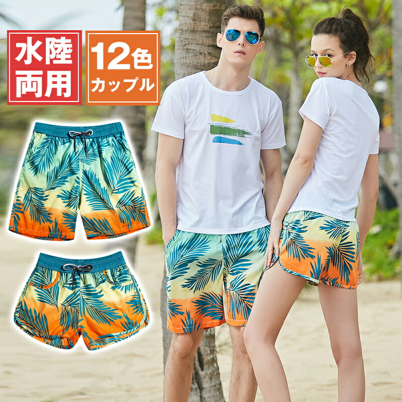 水陸両用 カップル サーフパンツ 海水パンツ 海水浴 スイムパンツ 水着 速乾 メンズ レディース ペアルック ペアショートパンツ サーフショーツ プール ショートパンツ スイムウ