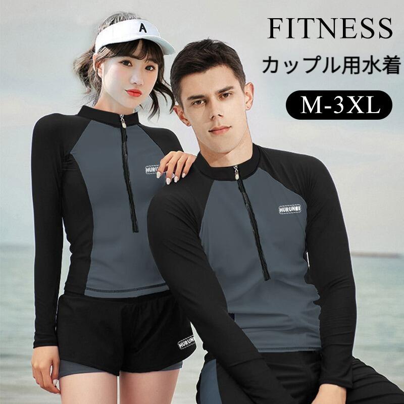 フィットネス水着 レディース 水着 メンズ M~3XL ペア カップル ウェットスーツ 体型カバー セットアップ ラッシュガード 大きいサイズ