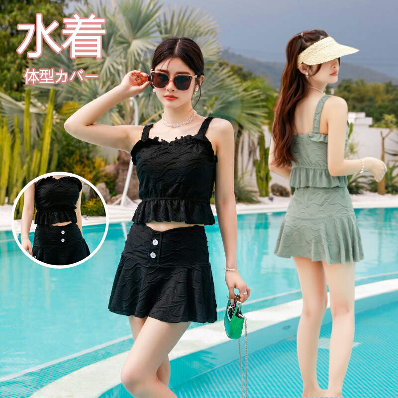 水着 レディース 体型カバー 可愛い フリル 小胸 タンキニ 露出控えめ セパレート 上下セット スカート 可愛い水着 みずぎ 大人 温泉 プール