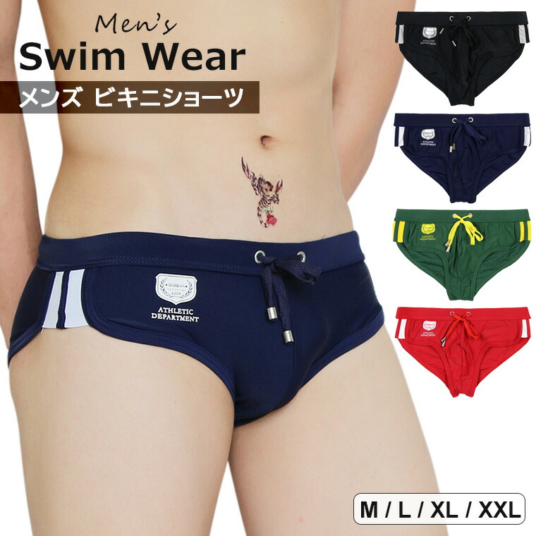 セクシーなローライズタイプのメンズ用ビキニショーツ 水着 メンズ ビキニショーツ ローライズ 海パン ビーチパンツ 海水パンツ インナーショーツ スポーティー 全4色