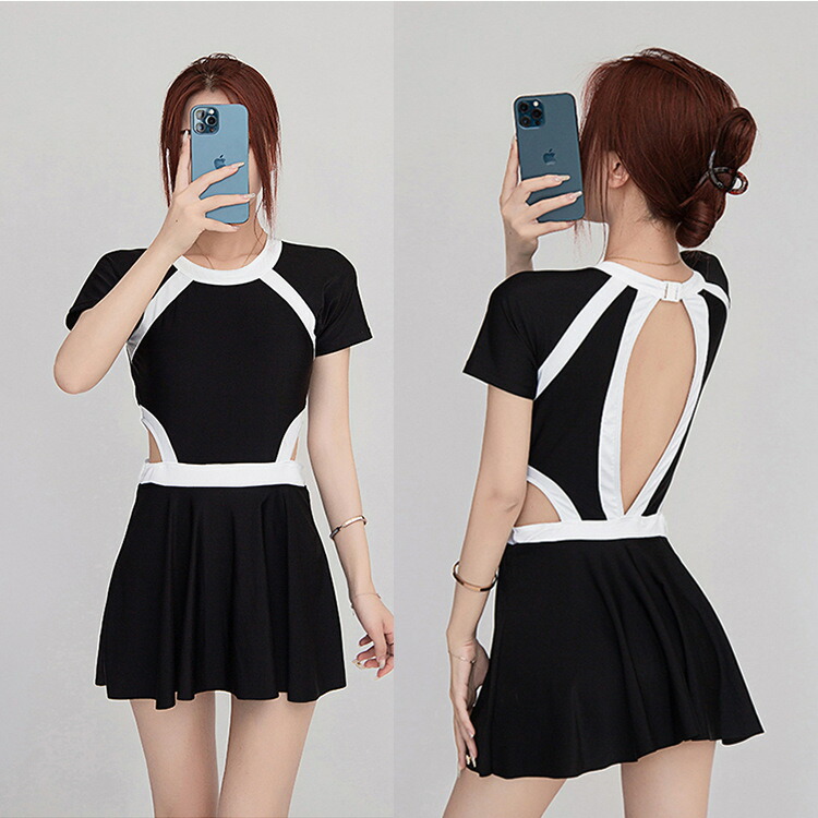 水着 レディース ワンピース トレンド 大きいサイズ ビーチウェア オールインワン ぽっちゃり オトナ女子 フレアスカート 可愛い お洒落 エレガント セクシー カバーアップ 黒 露出控えめ 20代