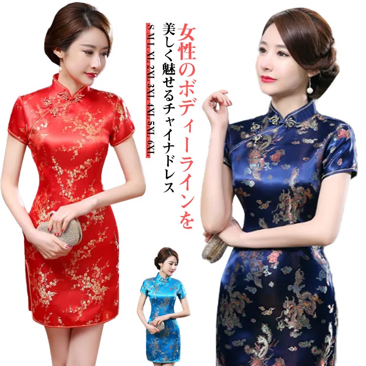 ~6 半袖チャイナドレス ミニ丈 コスプレ 中華風 きれいめ 総柄