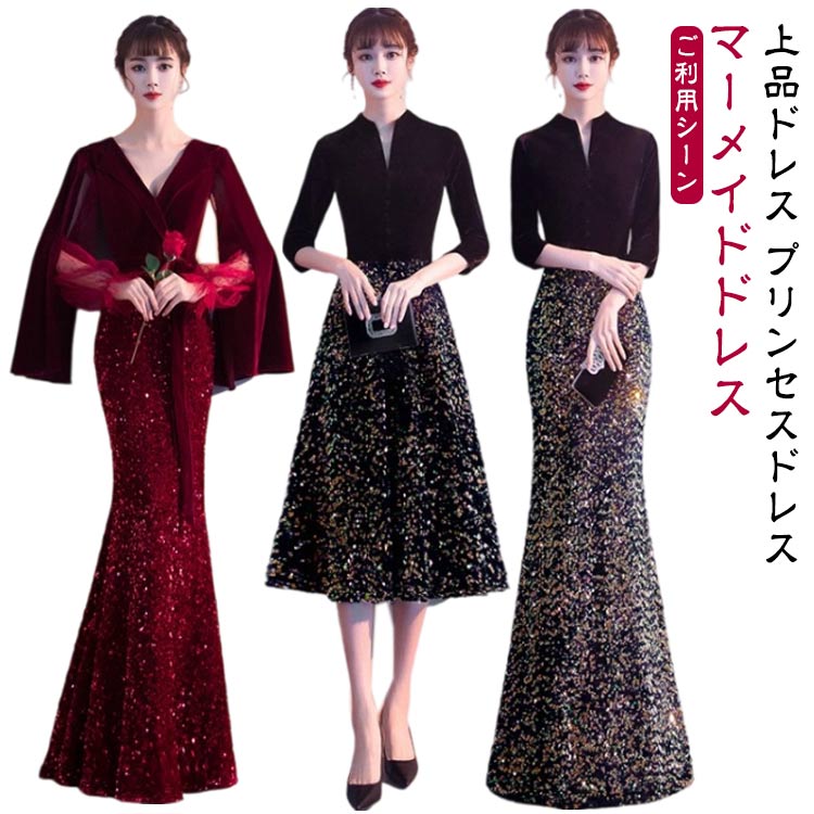 ワンピース マーメイドドレス ロングドレス タイトドレス ウェディングドレス パーティードレス Vネック メッシュ袖 イブニングドレス スパンコール キラキラドレス ナイ フォーマル