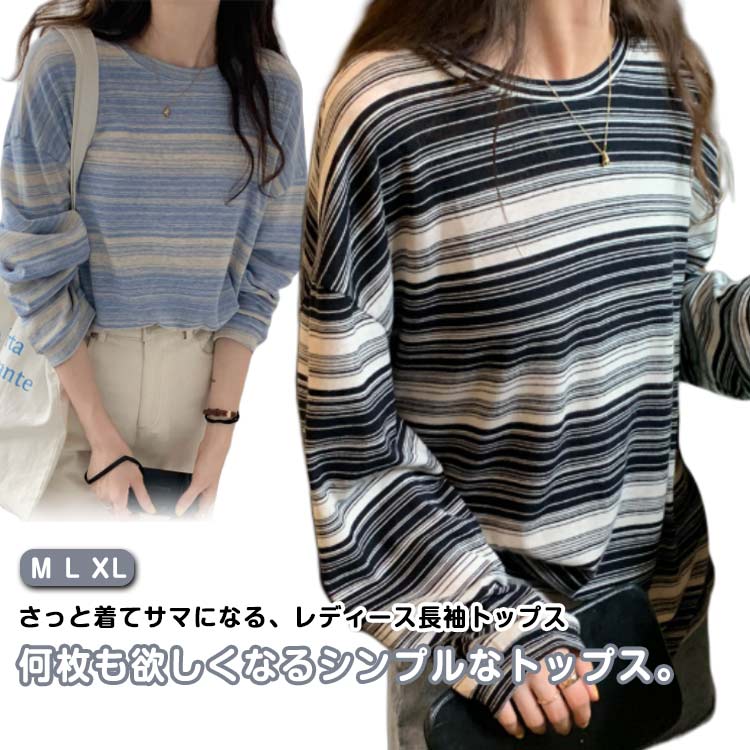 ロンティー Tシャツ リラックス トップス ロンT 通学 韓国風 シンプル 秋 夏 通勤 長袖 tシャツ ボーダー ロング レディース カットソー XL ゆったり 体型カバー L 春 カジュアル M