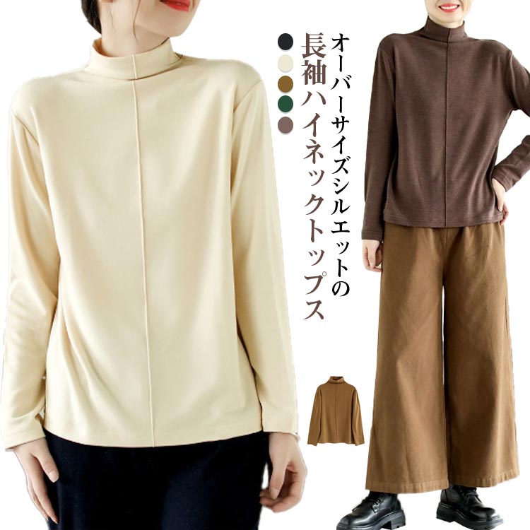 大人 インナー タートルネック おしゃれ ハイネック カットソー レディース 大きいサイズ トップス tシャツ 無地 シンプル 女性 長袖 重ね着 レイヤード 薄手 ゆったり 体型カ 春秋