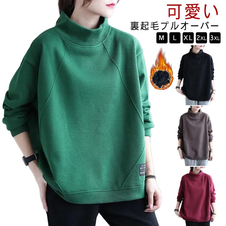 ~3 ハイネック 裏起毛トレーナー プルオーバー 秋冬 カジュアル 暖かい