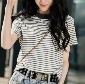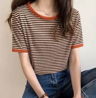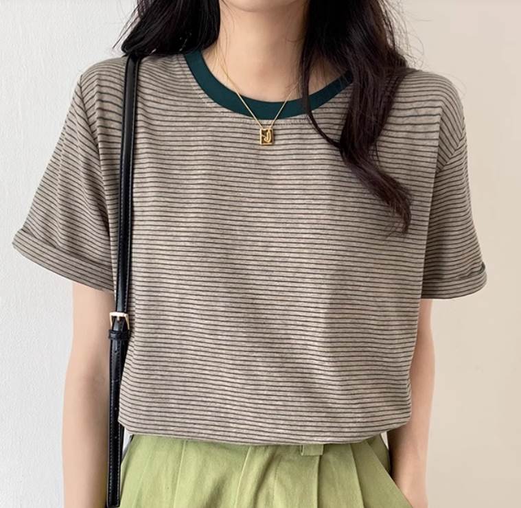 レディース トップス Tシャツ ミドル丈 半袖 ラウンドネック ストレート かわいい 大人可愛い きれいめ シンプル カジュアル おしゃれ かっこいい レトロ ボーイッシュ ガーリー ストライプ ラフ