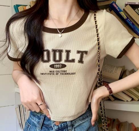 トップス Tシャツ カットソー 白トップス 袖あり 半袖 五分袖 ラウンドネック スリム 細身 ストレート リブ 大人可愛い きれいめ シンプル カジュアル 大人 スポーティー クール モ かっこいい