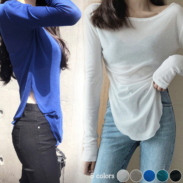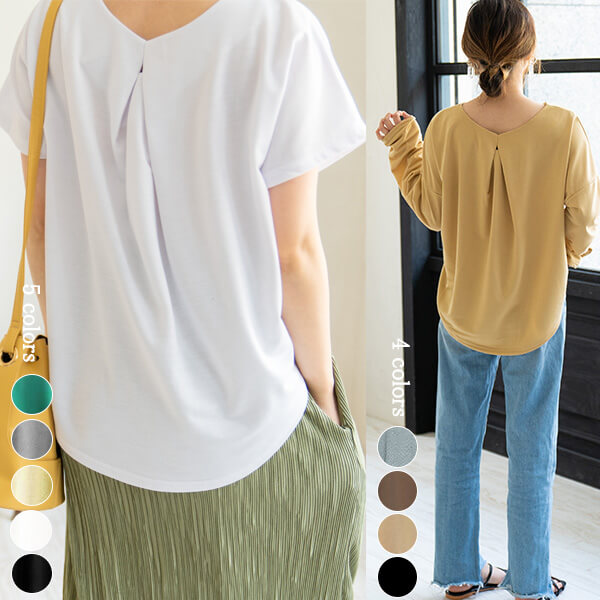 2B18 カットソートップス半袖Tシャツ長袖 バック タック ふんわり シルエット 春夏秋 レディース プルオーバー