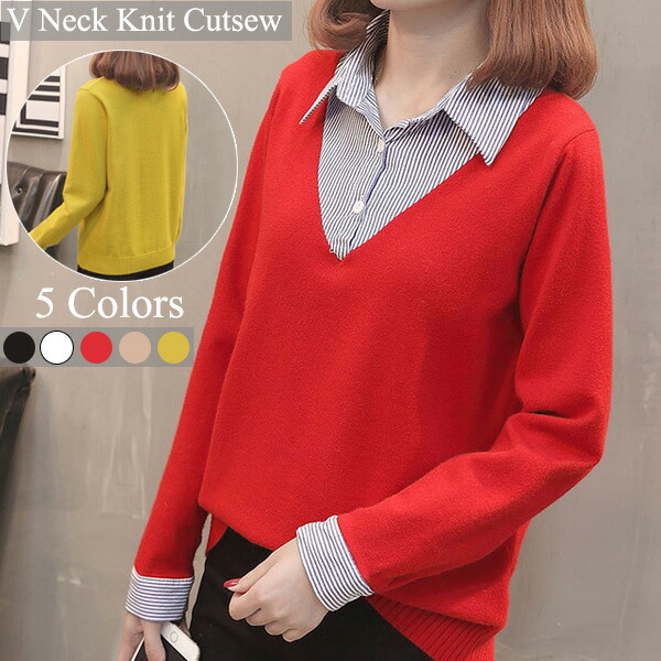 2A33 選べる5カラー Vネックカットソー トップス 長袖トップス シンプル インナー/レディース バーゲン 無地