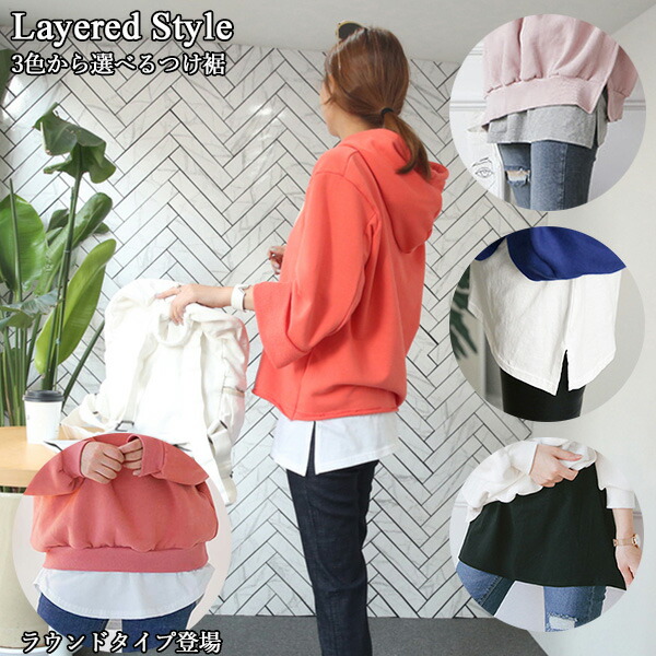 1A9.10 3色から選べる スリットレイヤードTシャツ つけ裾 付け裾レイヤードトップス Tシャツ スリット 重ね着風 ホワイト ブラック グレー 裾