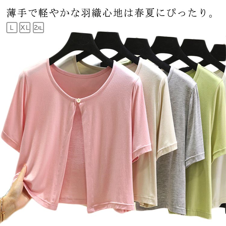 サマーカーディガン レディース 春 夏 トップス 半袖 ケア ストレッチ ショート丈