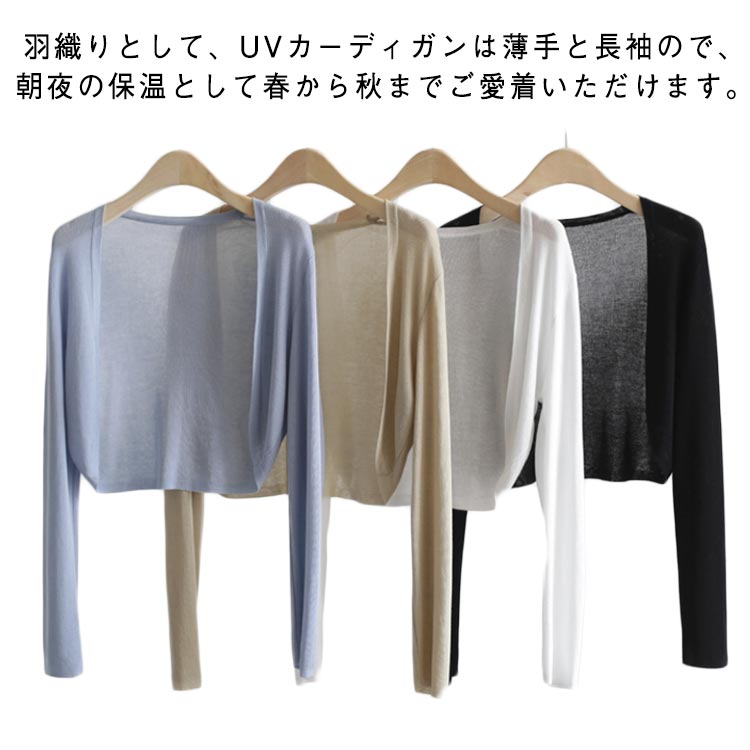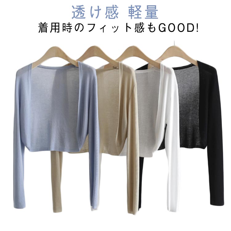 春夏 ショート丈 冷房対応 ゆったり 薄手 夏用 無地 uvカット 透け感 長袖 トップス シンプル 軽量 カーディガン 紫外線カット 可愛い きれいめ シアーカーディガン 紫外線対策