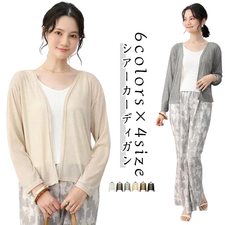 シアーカーディガン レディース 春夏 カーディガン 長袖 薄手 前開き