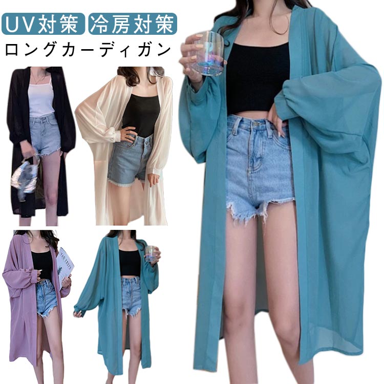 UVカット 紫外線カット 春 ゆったり 透け 薄手 サマー 夏 シアーカーディガン 長袖 シアートップス UVケア シンプル 無地 羽織り レディース 紫外線 軽い シース 涼しい