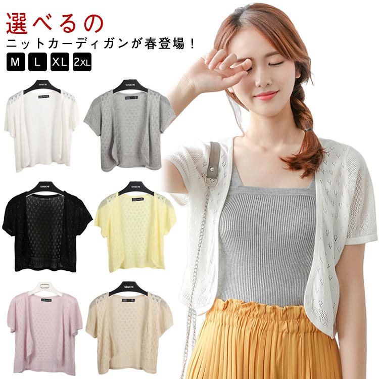 サマーカーディガン 半袖カーディガン ボレロ 春 透かし 夏 羽織り ショート丈カーディガン カーディガン サマーニット ニットカーディガン 透け ニット シンプル レディース カジュ ライトアウター