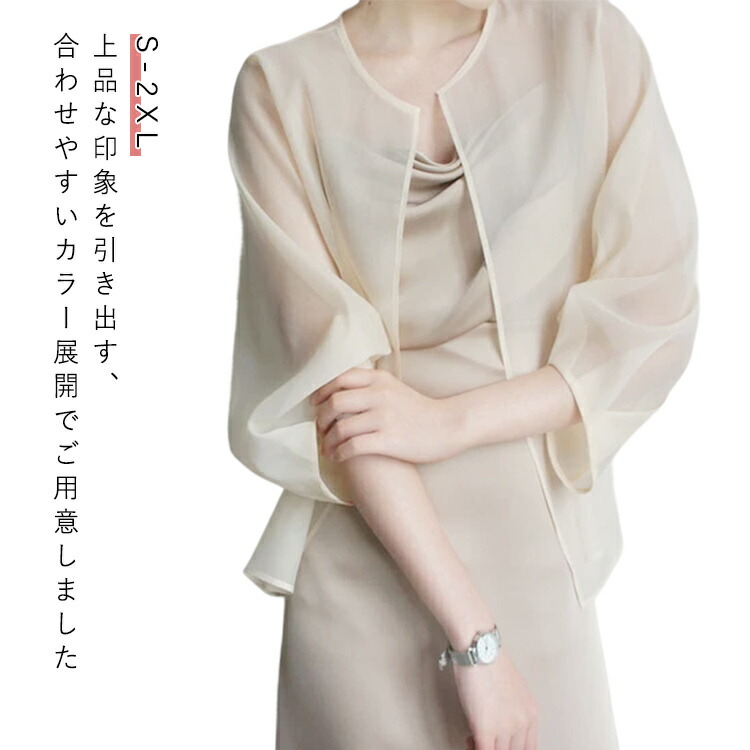 ノーカラー ベージュ レディース 白 シアートップス サマーカーディガン サマー 透け感 シアー 七分袖 ショート丈 アウター シャツ 春 夏 夏カーディガン シンプル 薄手 通気性