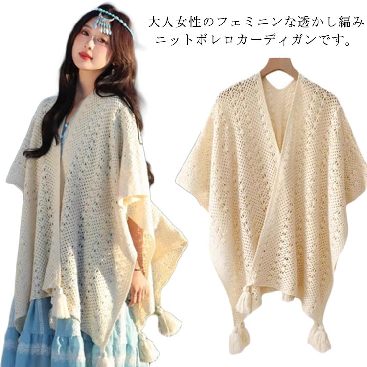 紫外線カット カーディガン ニット レディース ストール ショール スカーフ カット ホワイト ショール 大判ストール 春夏 日焼け止め 冷房対策 フリンジ 飾り ベージュ ボレロ