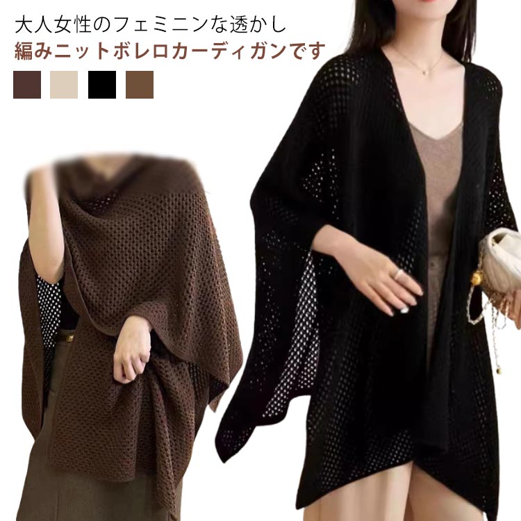 フェミニン 夏 大判 透かし彫り サマーカーディガン 透かし編み カーディガン ショール 紫外線対策 ノースリーブ レディース ニット 薄手 羽織 アウター ドルマンスリーブ ゆったり 大人 トップス