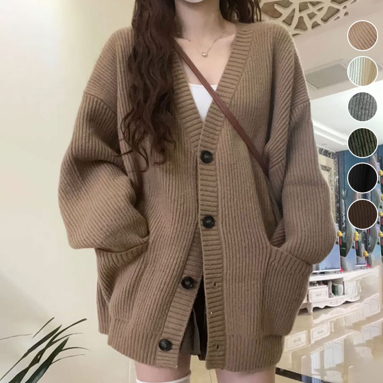 ネック ニット カーディガン トップス 羽織り アウター 韓国 ゆったり ルーズシルエット 長袖カーディガン