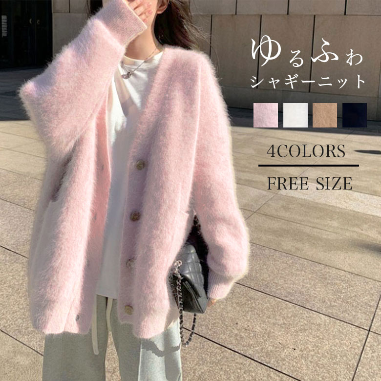 3B36 シャギーカーディガン シャギーニットカーディガン カーディガン シャギー レディース 秋 冬 トップス ニットカーディガン ニットトップス 起毛ニット ドロップショルダー 体型カバー 羽織り