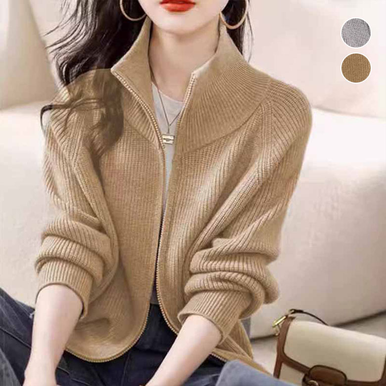 ニット カーディガン レディース 秋 冬 アウター トップス 羽織り ジップカーディガン セーターカーディガン ニットセーター カジュアル 暖かい 韓国ファッション シンプル