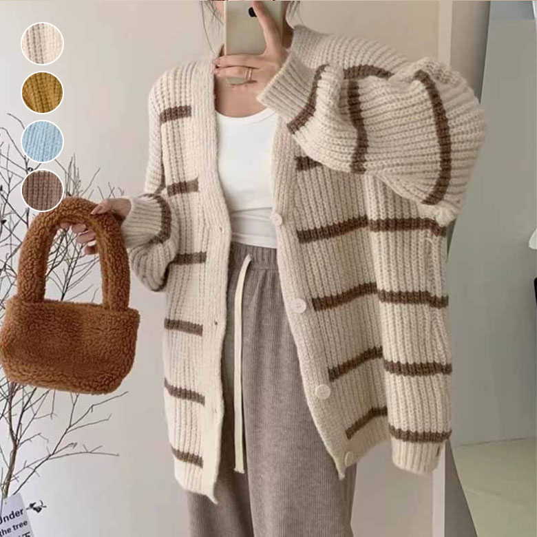ニット カーディガン アウター 秋 冬 羽織り セーター 防寒 暖かい 韓国