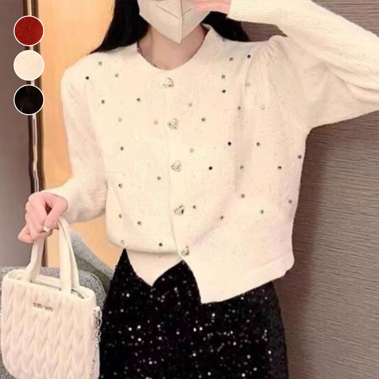 3B11 長袖 ニット カーディガン レディース 春 秋 ベルベット トップス アウター 羽織り ニットカーディガン セータージャケット セーター ニットセーター かわいい スパンコール 韓国 お洒落