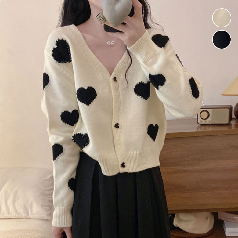 1K ハート柄 ニット カーディガン レディース 秋 長袖 ニットカーディガン セーター セーターカーディガン トップス アウター 羽織り ゆったり きれいめ お洒落 韓国ファッション カジュアル