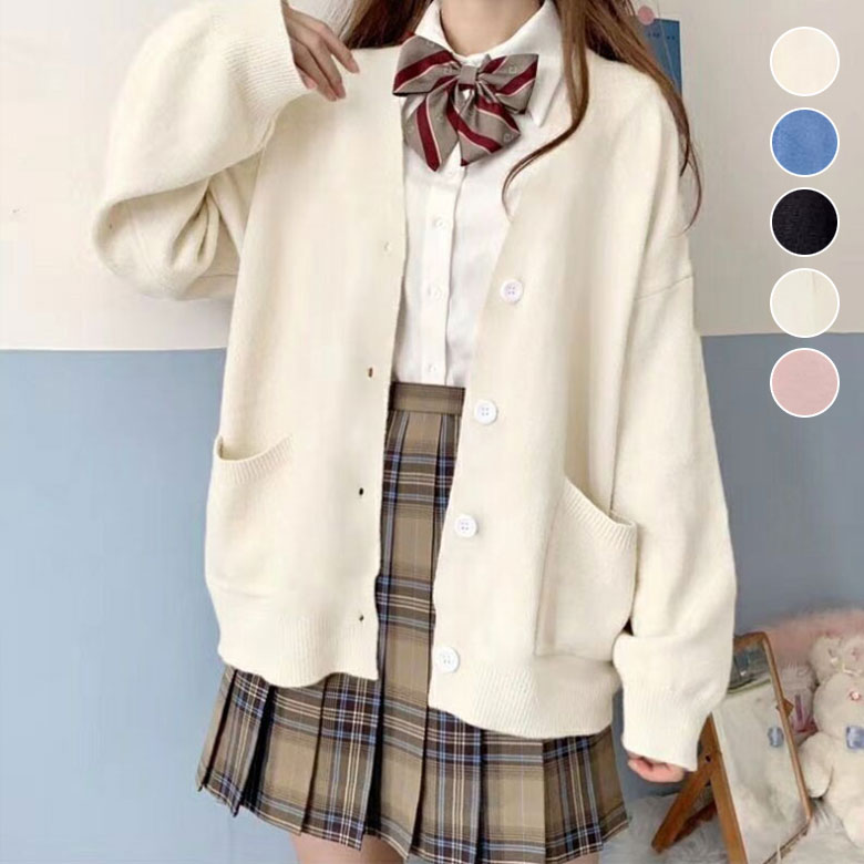 学生風 ニット カーディガン アウター 羽織り トップス カレッジスタイル 通学 通勤 薄手 学生