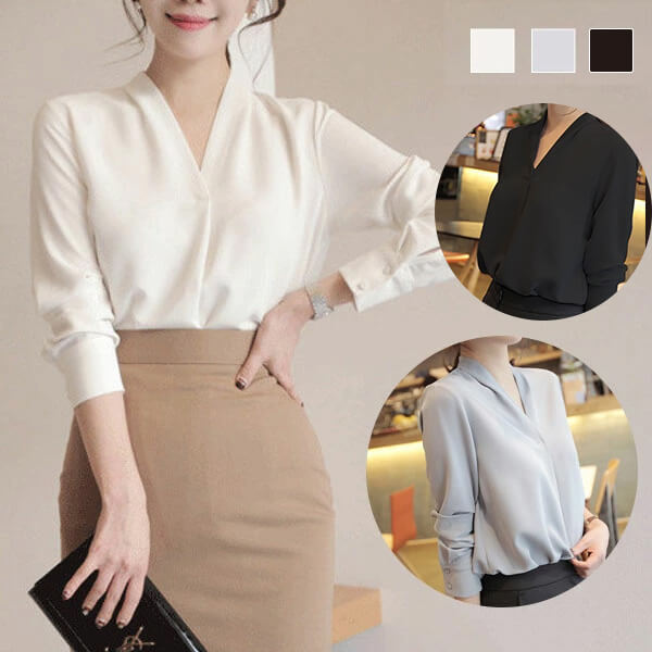 1,000円ぽっきり 2B6 Vネックブラウス 無地 おしゃれ トップス オフィス レディース 夏&秋バーゲン 韓国ファッション