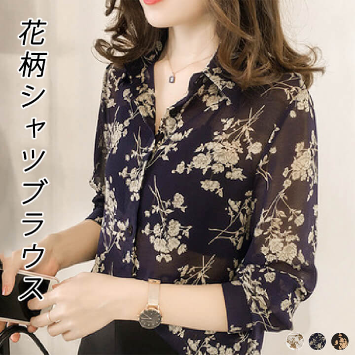 2A4 花柄 ブラウスレディース シャツ ブラウス 長袖 M~XLブラウス トップス エレガント おしゃれ 着痩せ きれいめ トップス通勤 春 秋 レディースバーゲ ビジネス