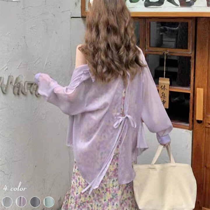 2A41 4カラーシアーシャツ ブラウス バックリボンシアーシャツ 透け感ブラウス UV対策 トレンド感 トップス ロングシャツ レディース シャツ 大きいサイズ長袖 ロング 薄手 日焼け ゆったり