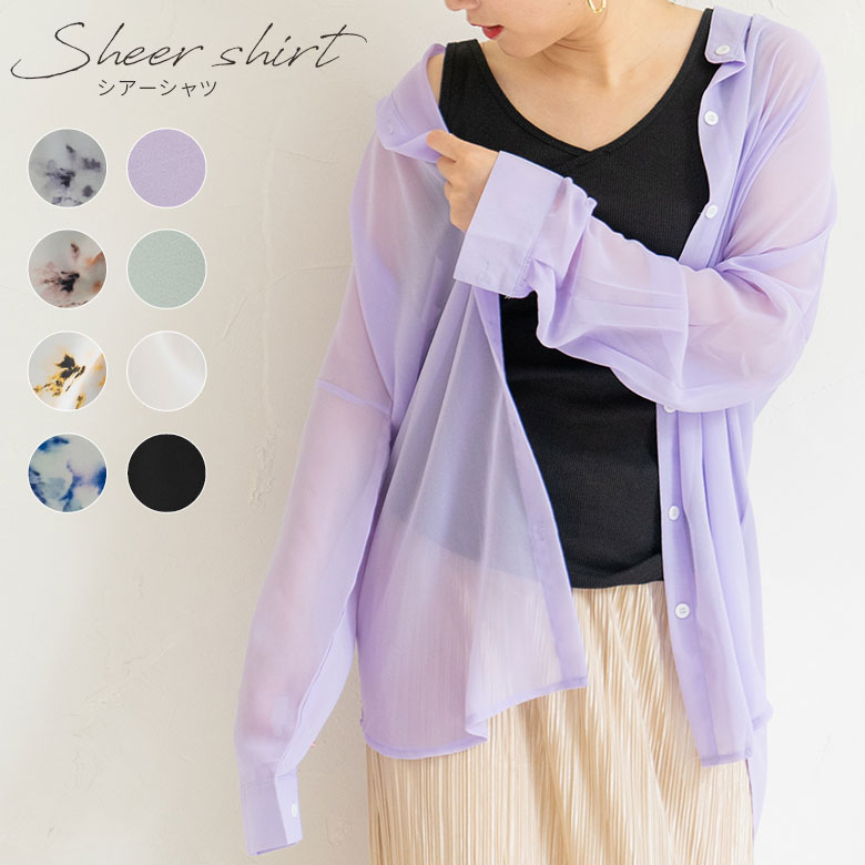 2A50 シアーシャツ ブラウス タイダイ柄シアーシャツ 透け感ブラウス UV対策 トレンド感 トップス ロングシャツ レディース シャツ 大きいサイズ長袖 ゆったり 薄手 日焼け シースルー ロング