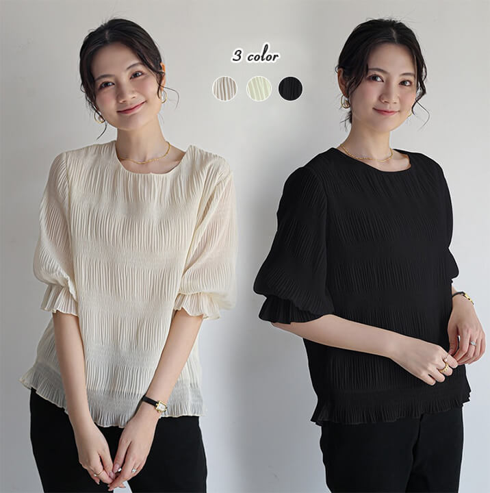 2B3 シフォンプリーツブラウス レディース 体型カバー バーゲン 凹凸感のあるシフォンプリーツ可愛い