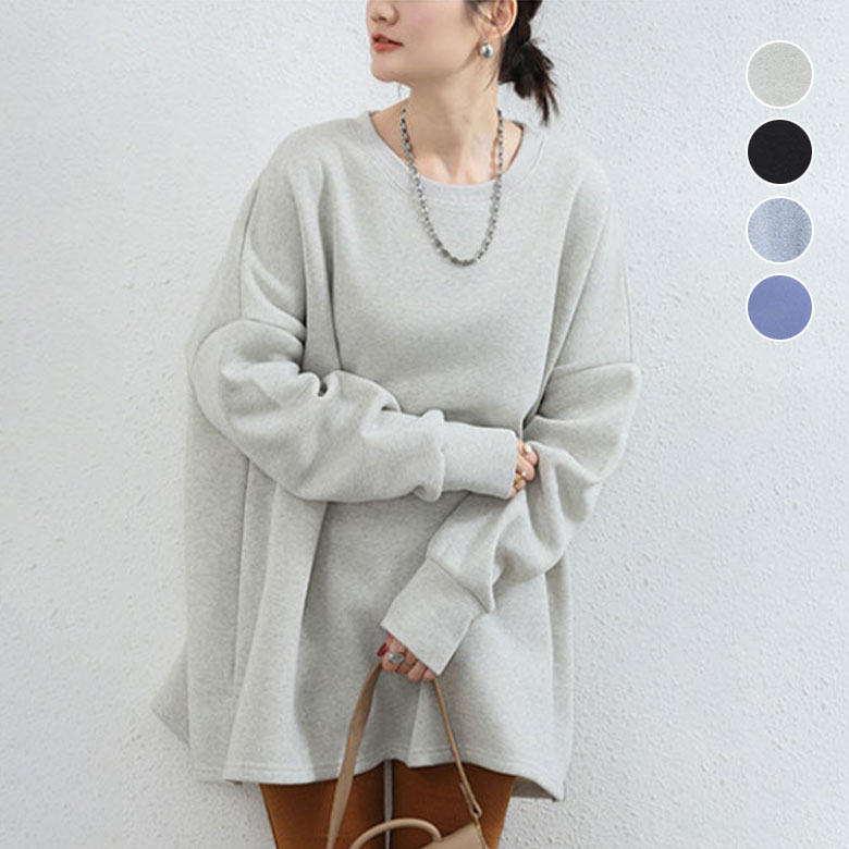 長袖 スウェット シャツ ゆったり オーバーサイズ 無地 シンプル スリット